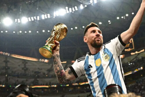 Abel Arce, tatuador profesional marplatense, inmortalizó en su piel y en la memoria el escudo de la Selección Argentina con las 3 estrellas doradas y la fecha de la histórica hazaña de la “Scaloneta”.