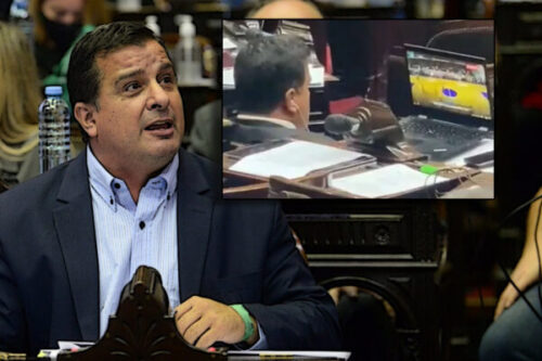 El legislador fue filmado en el recinto de Diputados disfrutando del partido de Echagüe de Paraná, club del que es vicepresidente, mientras se discutía el Presupuesto 2023.