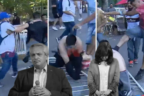 A las afueras del predio “Néstor Kirchner” volaron tormpadas y patadas durante el cierre de campaña del oficialismo.