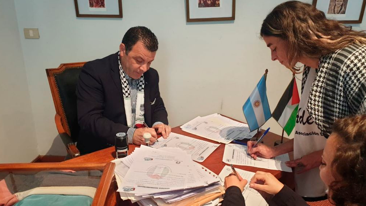 Según informó la propia embajada, el encargado de negocios, Riad Al-Halabi, recibió más de 700 solicitudes, reunidas “a lo largo y ancho” del país, en el marco de las actividades por el Día Internacional de Solidaridad con el Pueblo Palestino. Para el diplomático, el gesto argentino expresa un “compromiso político y moral que va más allá del simbolismo”.