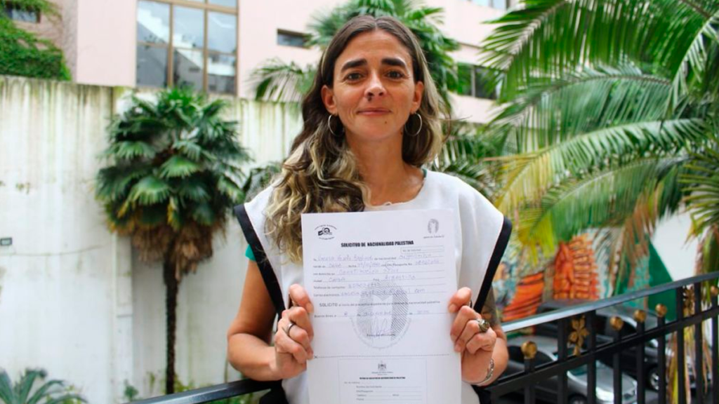 En uno de esos materiales, una joven militante de izquierda anuncia con entusiasmo que, “a partir de hoy”, es “oficialmente palestina”, igual que “los más de 200 jóvenes” que habrían completado el formulario en todo el país. La escena continúa con la intervención de Al-Halabi, que delante de la cámara “proclama” como palestinos a los presentes, como si se tratara de una naturalización exprés a fuerza de consignas.