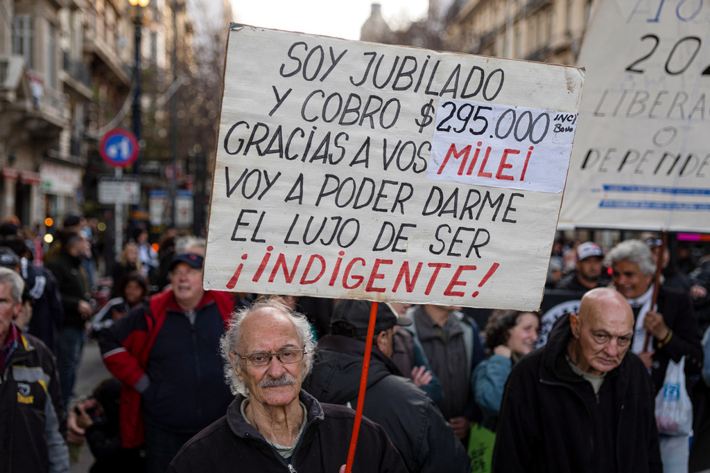 Jubilados en protestas por cobrar cien veces menos que Eduardo Menem.