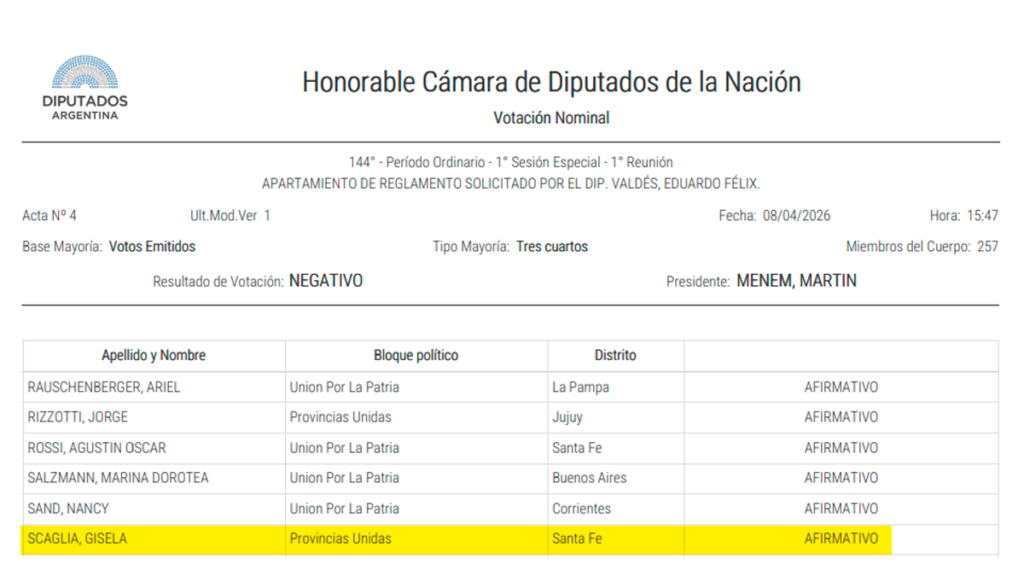 Posteriormente, integraría su agrupación en una alianza con LLA donde fue Lule Menem —un operador de estrecha confianza de la Secretaría General de la Presidencia, Karina Milei— quien gestionó su vuelta.